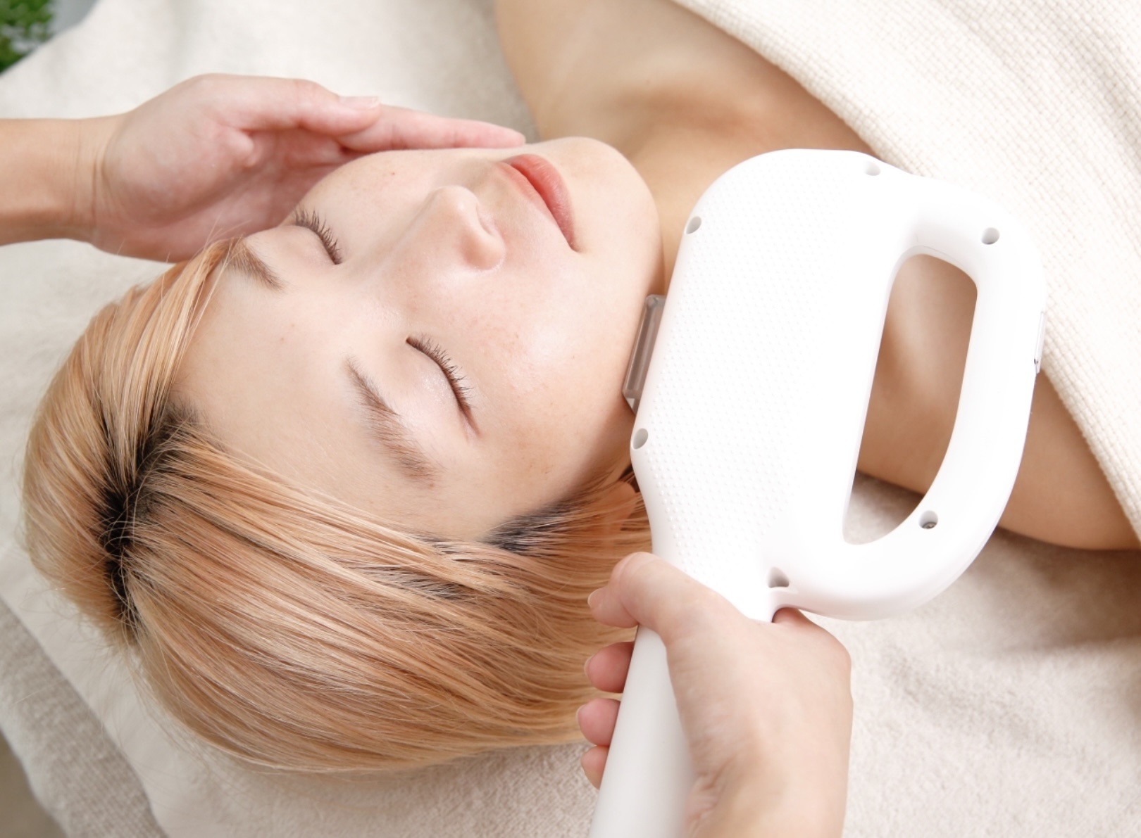 光フェイシャルは、IPL(Intense Pulsed Light)という特殊な光を用いて肌の奥深くに働きかけ、リフトアップ効果が得られます。この施術では、コラーゲンやエラスチンといった肌の弾力やハリを支える成分の生成が促進されるため、たるみの改善や引き締まったフェイスラインを作ってくれます。